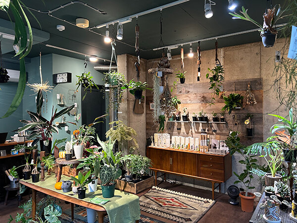 店内はグリーンに溢れ、心がほっと癒されるような空間。観葉植物だけでなく、ドライフラワーや鉢、花瓶、ルームフレグランスなど、暮らしを彩るアイテムが幅広く揃います。「ペットがいても安心の植物は?」「グリーンを置きたいけど虫が心配」といった相談に乗ってもらえるだけでなく、植物と鉢を一緒に購入した場合は300円~で植替えを行ってもらうこともできます。