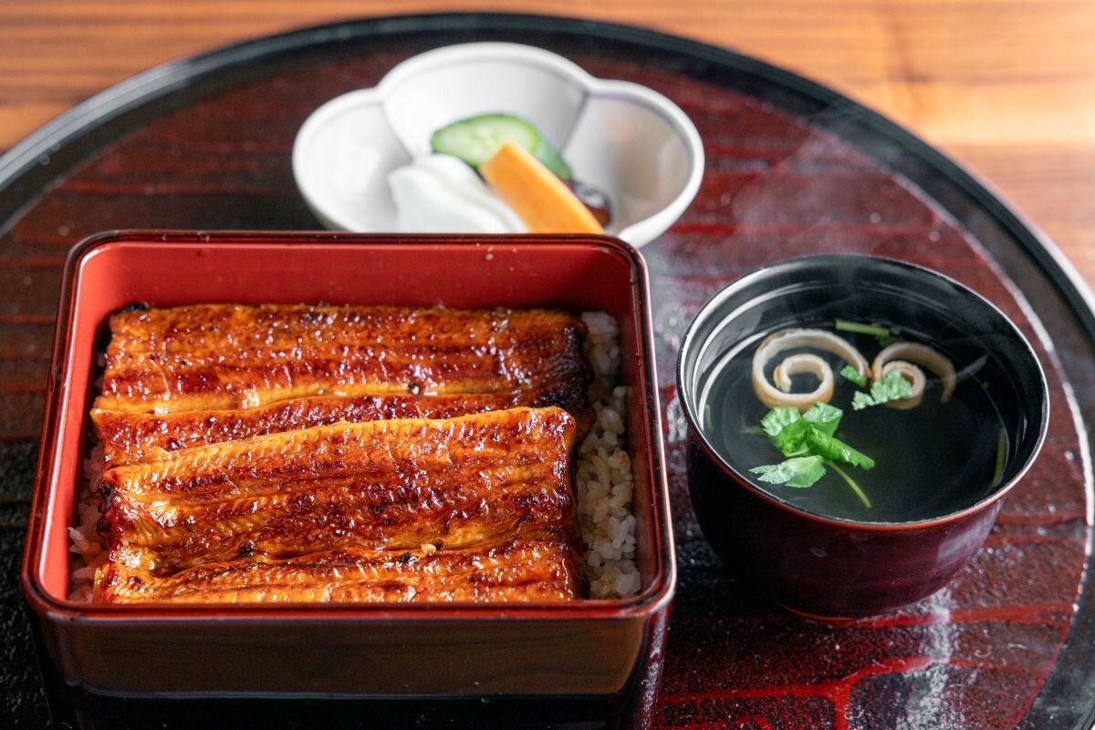 店内では、旨みが格別なブランド鰻「うなぎ 坂東太郎」の「うな重 大」(8,000円)や、うな重ハーフ・かぼちゃサラダ・鶏の照り焼き・玉子焼き・ジュースがセットになった「お子様うな重」(2,130円)などのメニューも。